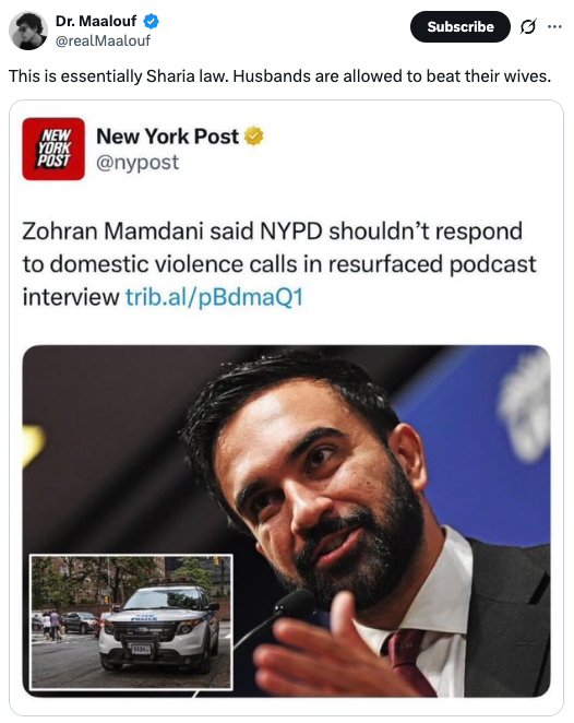 Zohran Mamdani said NYPD shouldn't respond to domestic violence calls in resurfaced podcast interview.